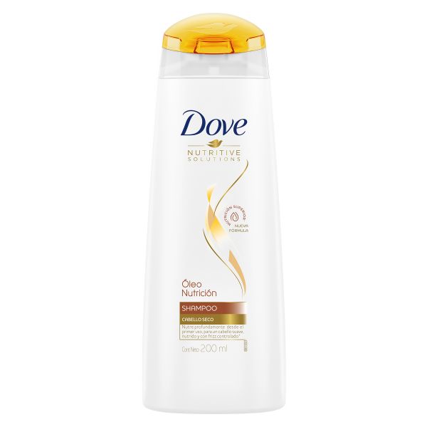 Shampoo Dove Óleo Nutrición para dejar el pelo sedoso y con brillo cinco veces más. Ideal para cabello seco.